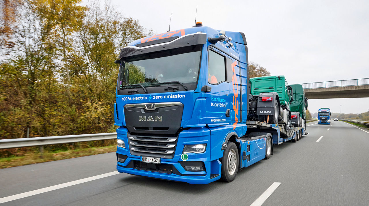 Společnost MAN Truck & Bus společně se svým dlouholetým logistickým partnerem, společností VEGA International, zavádí inovativní intermodální koncept přepravy nových vozidel, který kombinuje železniční dopravu na hlavním úseku trasy s plně elektrifikovanou dopravou na „poslední míli“. Díky tomuto ekologickému řešení lze ušetřit přibližně 2 700 tun CO2 ročně. Po úspěšné testovací fázi se dvěma tahači eTGX plánuje společnost VEGA koncept plně elektrické dopravy postupně rozšiřovat. Do konce roku 2026 by mělo být pro tento účel nasazeno dalších 30 až 40 elektrických nákladních vozů MAN.
