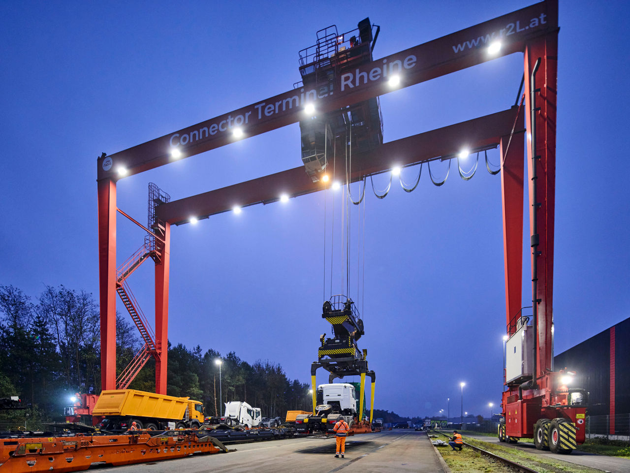 Patentovaná koncepce společnosti VEGA využívá speciální plošiny, které umožňují efektivní vykládku vozidel pomocí portálových jeřábů v terminálu.