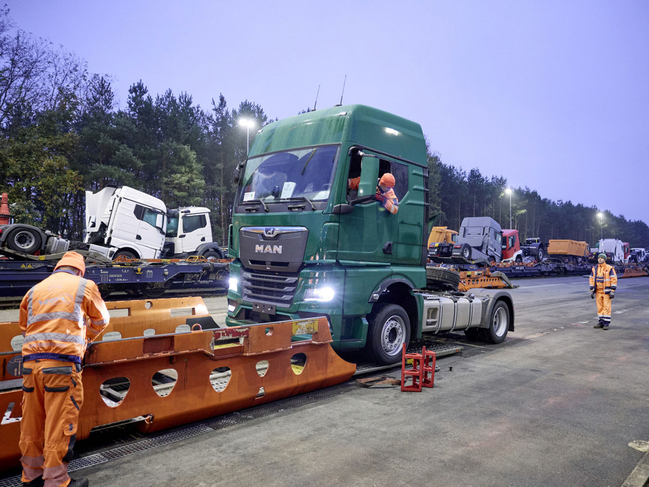 Každý týden přepraví tahače MAN eTGX zcela elektricky, tedy bez místních emisí, ze železničního terminálu společnosti VEGA v Rheine u Osnabrücku do okruhu 300 km 30 až 40 nových vozů. Nová vozidla tam přijíždějí z výrobního závodu MAN v Krakově, takže většinu přepravní trasy ujedou rovněž elektricky – po železnici. Železniční doprava do severozápadního Německa je součástí služby LionXpress. Přepravní koncept je založen na dvou železničních trasách do Německa a Rakouska, které MAN se svými logistickými partnery postupně rozšiřuje. Již nyní tak dokáže dosáhnout významných úspor CO2. Od zahájení projektu v červnu 2023 přepravila společnost VEGA vlakem, tedy šetrněji ke klimatu, více než 11 000 nákladních vozidel, čímž ušetřila 6 000 tun CO2. Celkem se při přepravě více než 22 000 nákladních vozidel v rámci obou projektů vlakové přepravy LionXpress podařilo ušetřit přibližně 10 400 tun CO2.