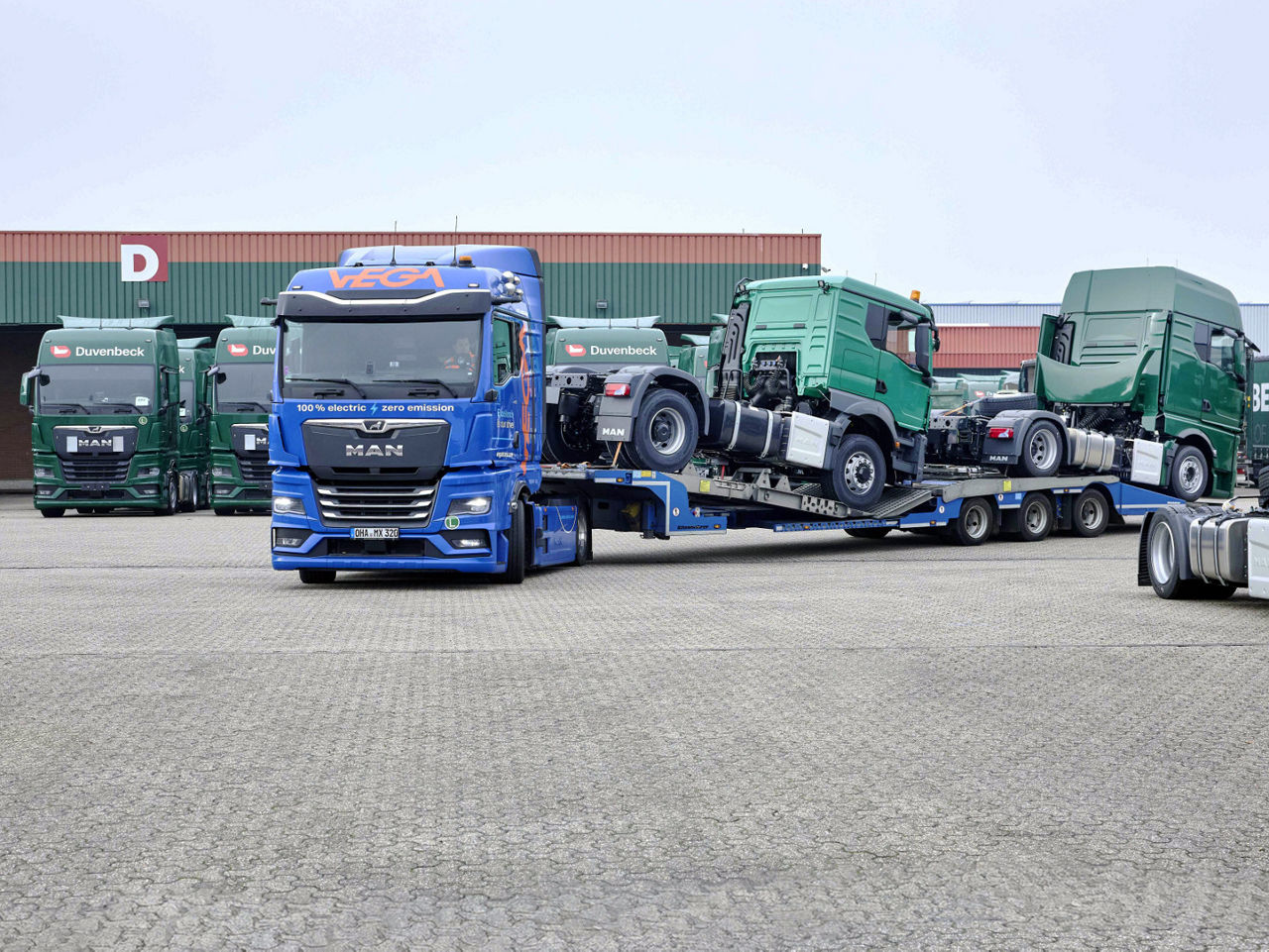 Díky patentované koncepci nakládky společnosti VEGA lze na vlaky nakládat vozidla s výškou až 4,2 metru. Elektrifikace celého logistického řetězce od výrobního závodu až po koncového zákazníka zapojením e-trucků do přepravy nových vozidel je součástí dlouhodobé strategie udržitelnosti společnosti MAN. Do roku 2030 se mají emise CO2 produkované v procesu dodávky vozidel snížit o 30 %. Kromě elektrifikace tzv. poslední míle a rozšíření železniční sítě se plánuje také integrace dalších oblastí, jako je logistika náhradních dílů.